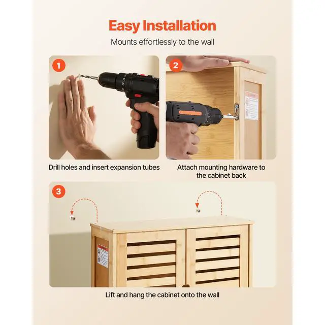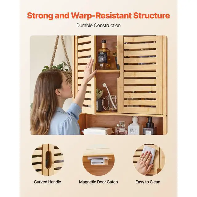 VEVOR Bathroom Wall Cabinet Over Toilet Medicine Cabinet 2 Doors and Shelves