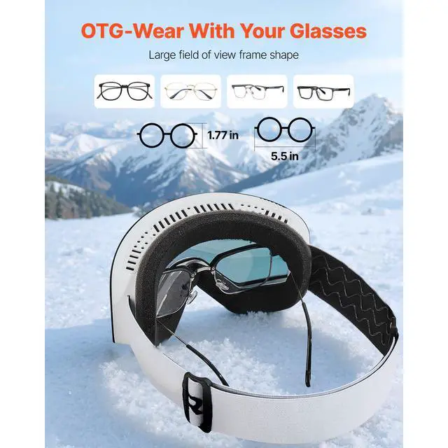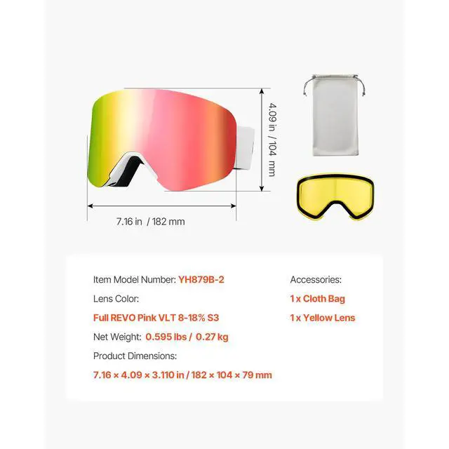 VEVOR Ski Goggles Magnet Cylindrical Lens with Pink Revo Coating Snow Goggles
