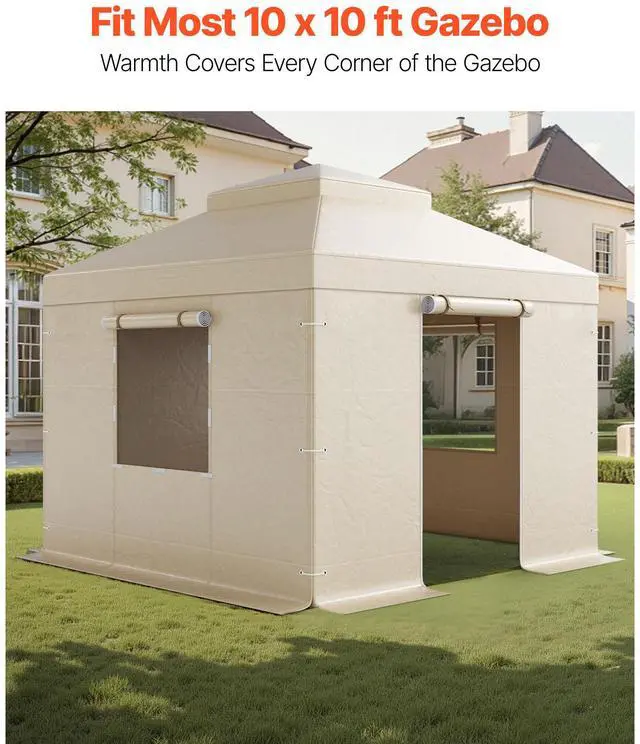VEVOR Winter Gazebo Cover Fits 10 x 10 ft Double Roof Gazebos Mesh with Windows