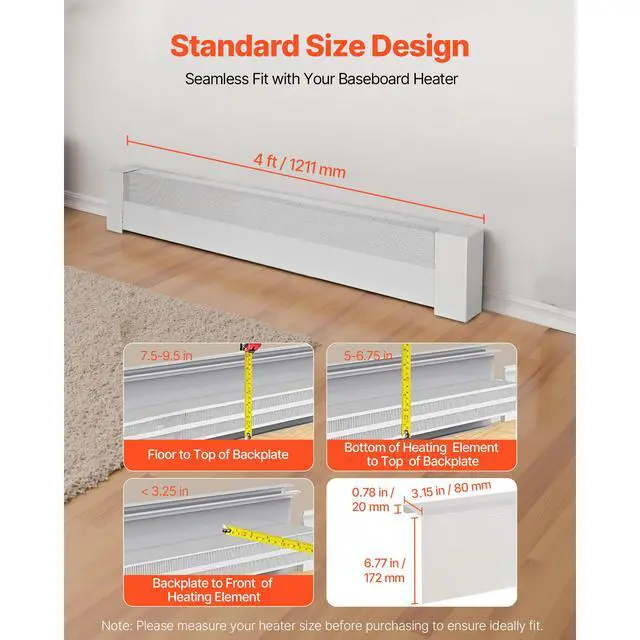VEVOR 4 ft Baseboard Heater Covers Basic Series Standard for Bedroom White