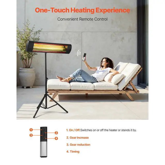 1500W Infrared Heater Electric Space Heater Remote 3 Speeds Timer Outdoor