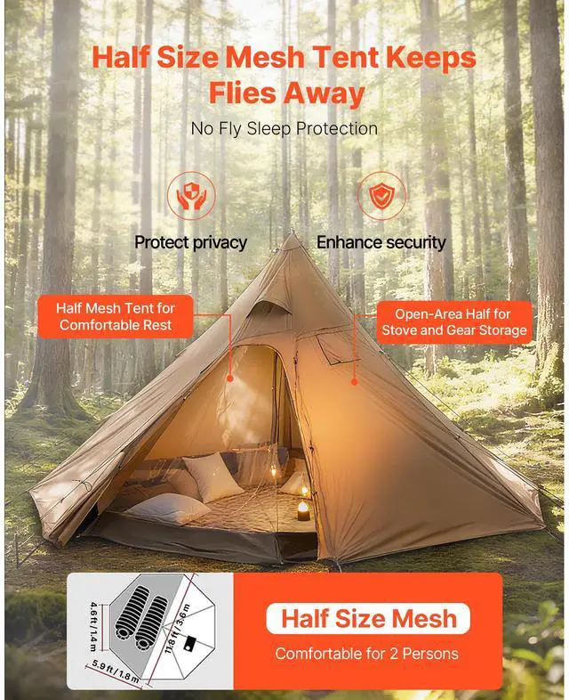 VEVOR Camping Tipi Hot Tent with Stove Jack & Inner Tent 4 Persons Lightweight