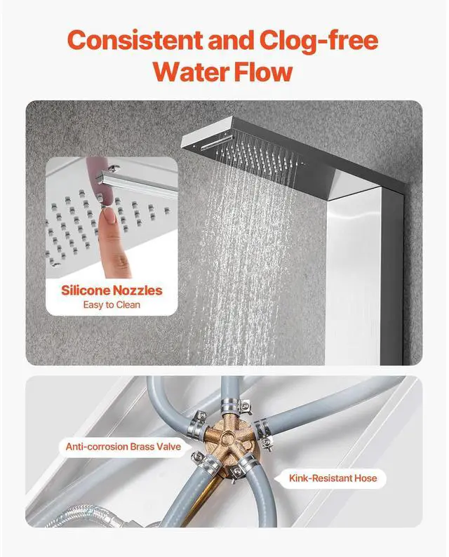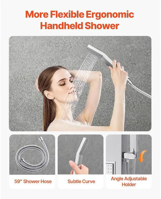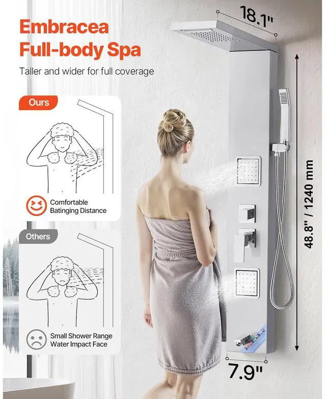 Shower Panel Tower System Stainless Steel Column Rainfall Head Massage Jet 5Mode