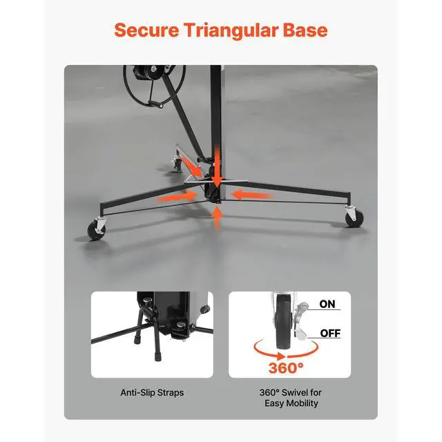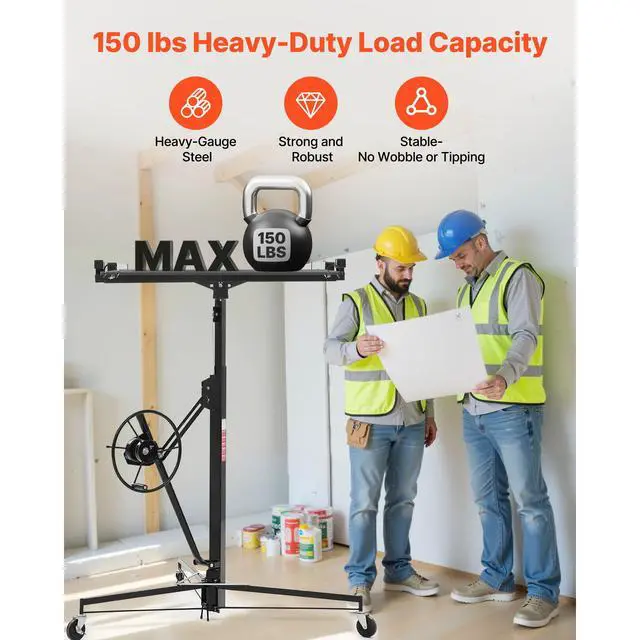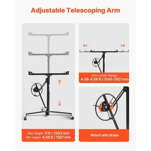11ft Drywall Lift 150 lbs Sheetrock Hoist Adjustable Arm Lockable Wheels Black