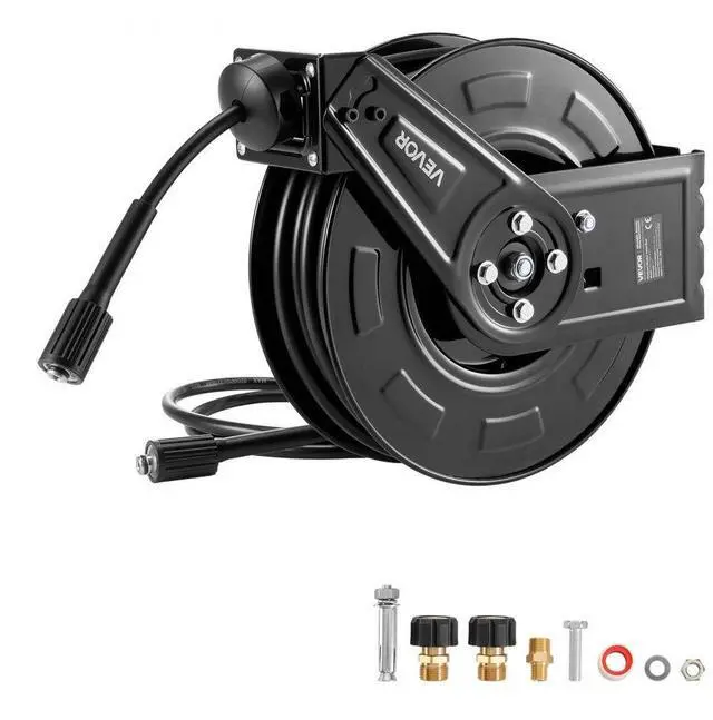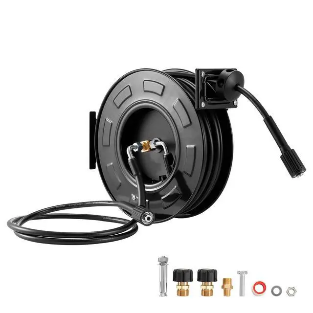 VEVOR Pressure Washer Hose Reel 60ft x 1/4in Retractable 4000PSI Auto-Rewinding