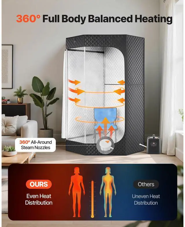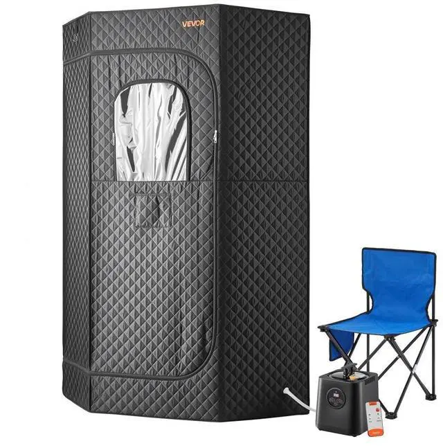 VEVOR Portable Steam Sauna Full with Steamer Chair Oil Box Remote Black