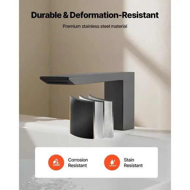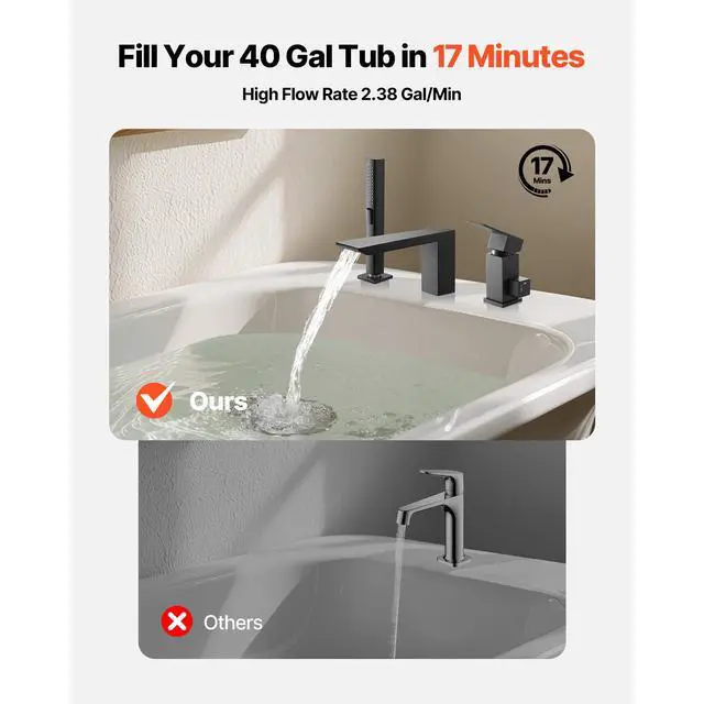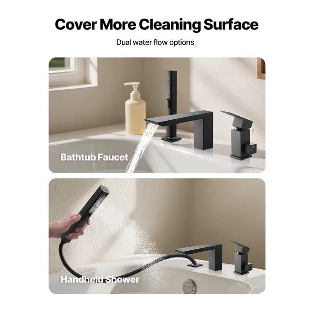 VEVOR Roman Tub Faucet 3 Hole Waterfall Bathtub Faucet with 1 Handle Matte Black
