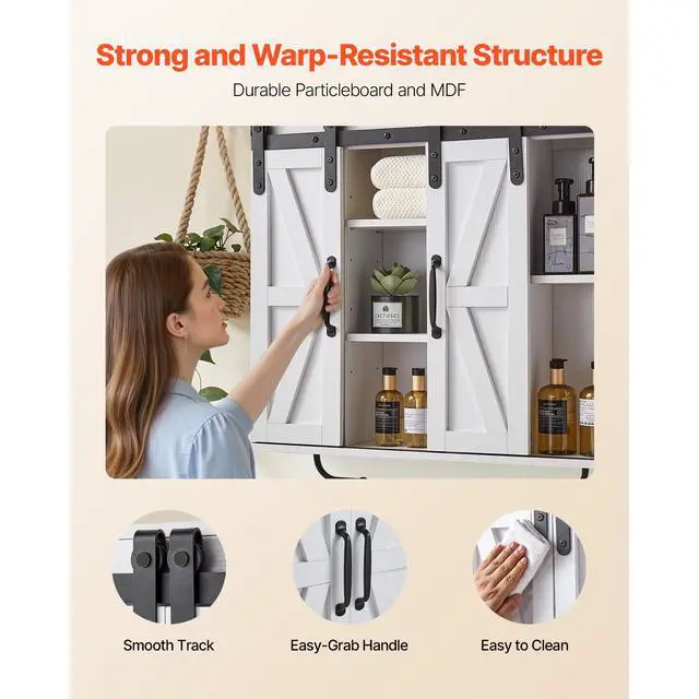 • VEVOR Bathroom Wall Cabinet Medicine Cabinet with Tower Bar and 2 Doors White