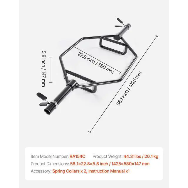 Trap Bar Hex Bar Barbell Weightlifting for Squat Shrug Deadlift 2in Knurled Grip