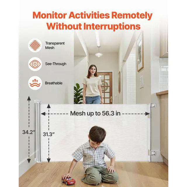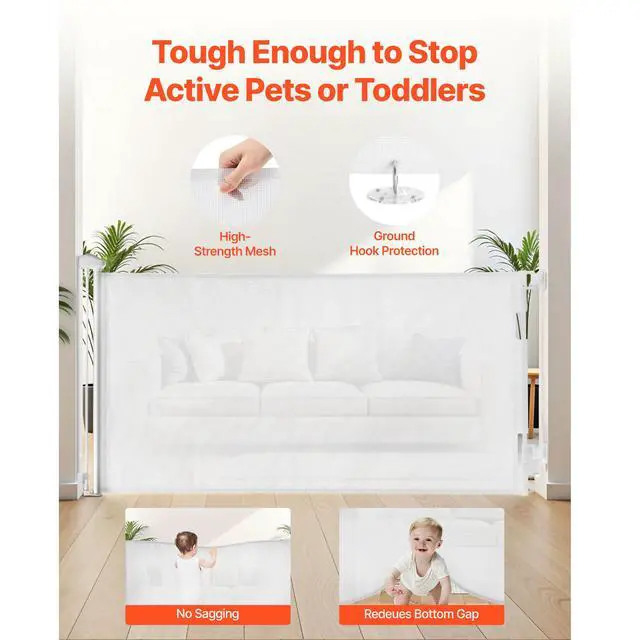 VEVOR Retractable Baby Gate Mesh Dog Gate 56.3 inch Wide 31.3 inch Tall White