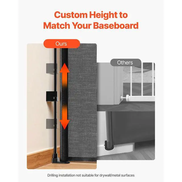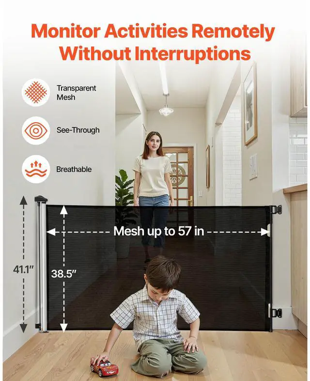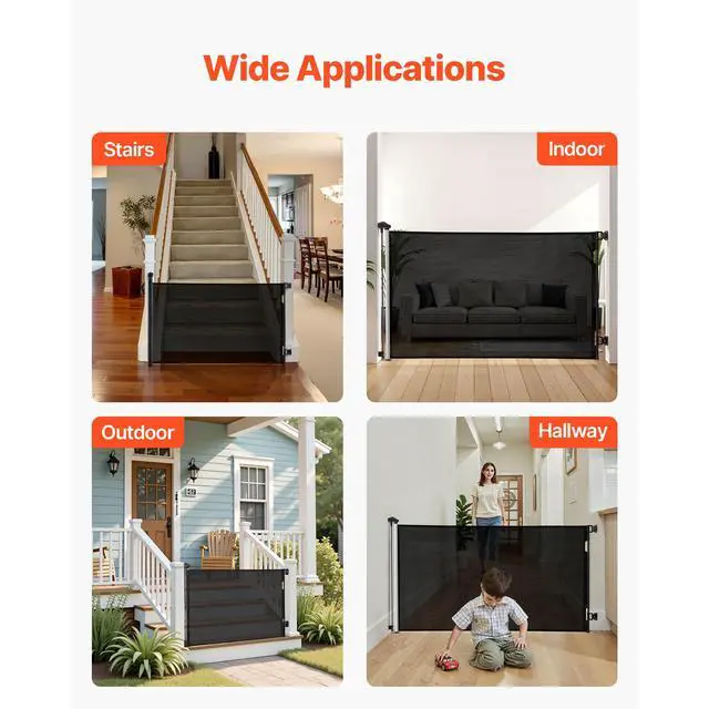 VEVOR Retractable Baby Gate Mesh Dog Gate 57 inch Wide 38.5 inch Tall Black