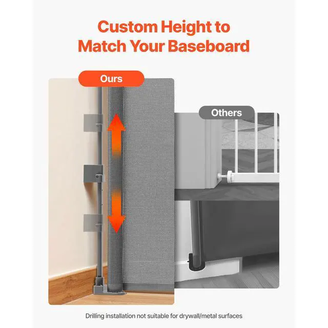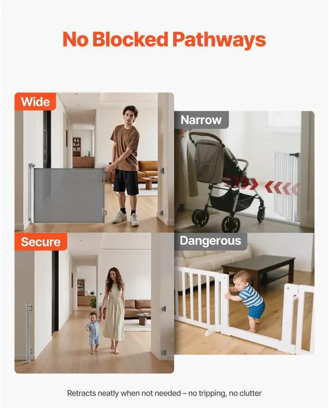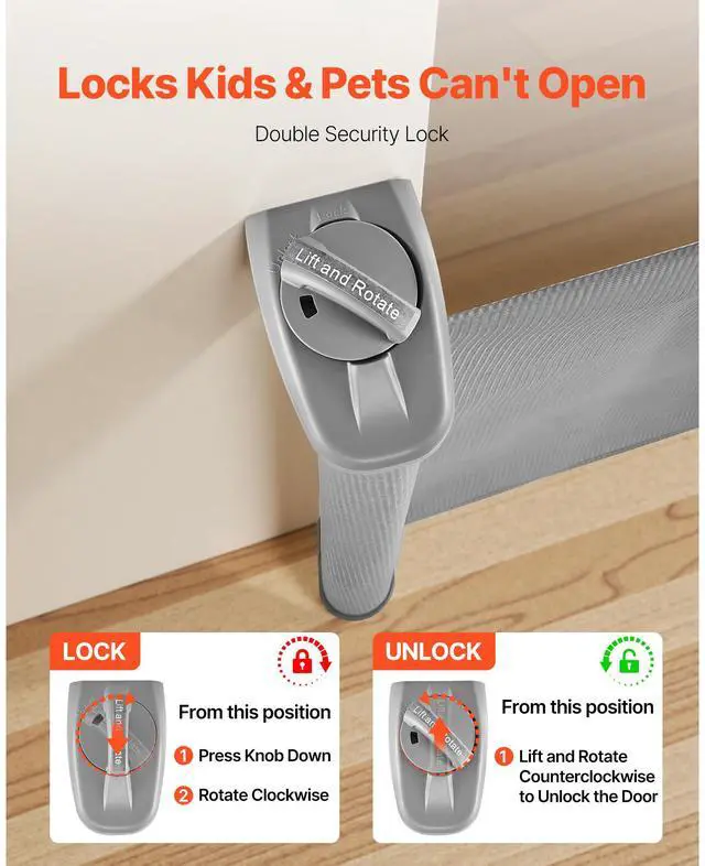 VEVOR Retractable Baby Gate Mesh Dog Gate 72.8 inch Wide 31.3 inch Tall Gray