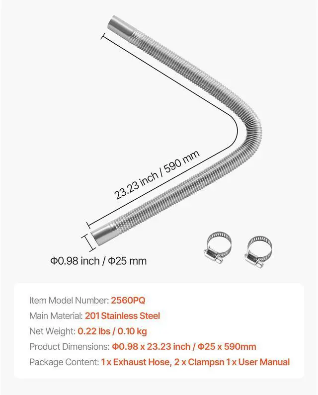 VEVOR Exhaust Hose 23.6 inch Diesel Heater Flexible Exhaust Pipe with 2 Clamps