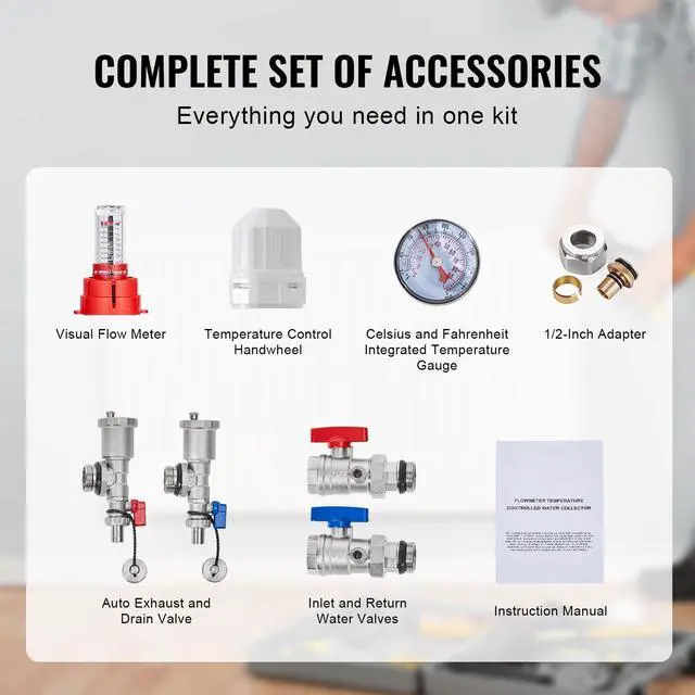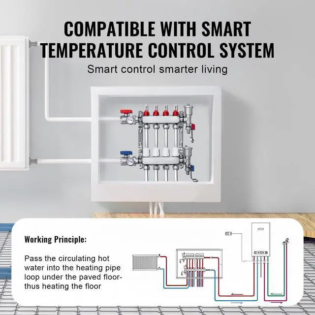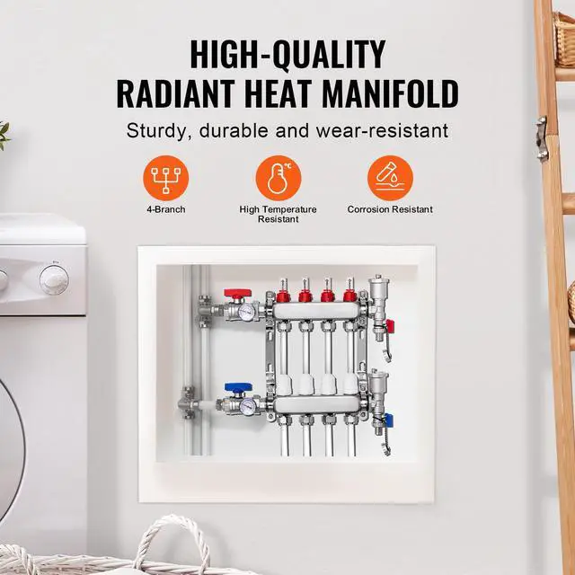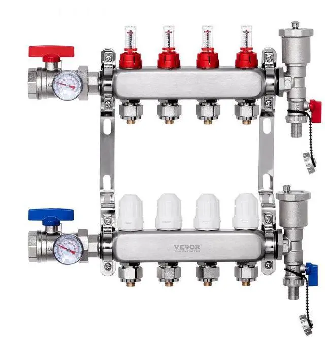 VEVOR 4-Branch Radiant Heat Manifold 1/2" PEX Tubing Floor Heating Manifold Set