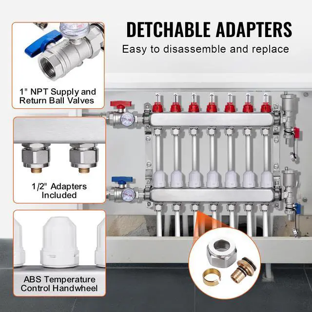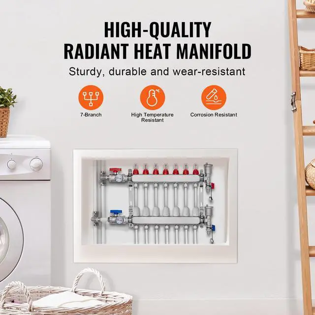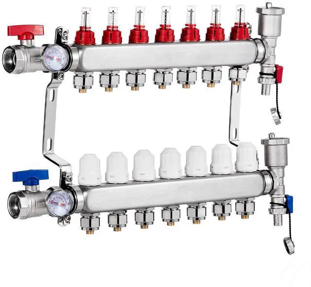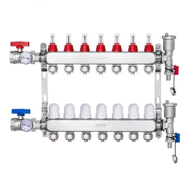 VEVOR 7-Branch Radiant Heat Manifold 1/2" PEX Tubing Floor Heating Manifold Set