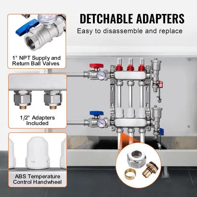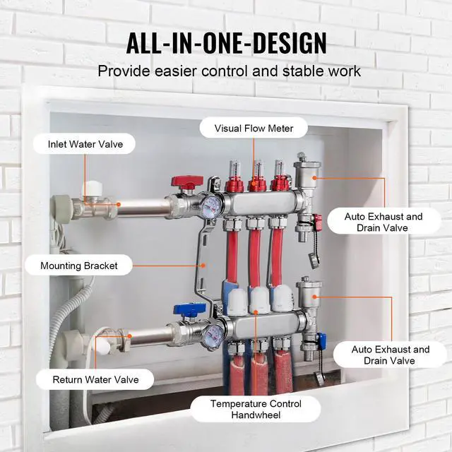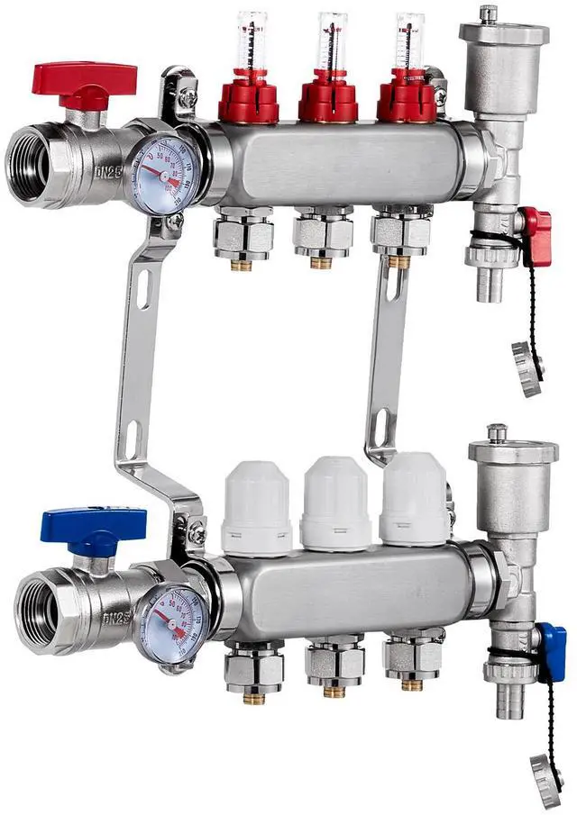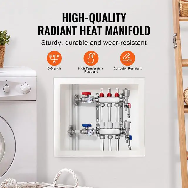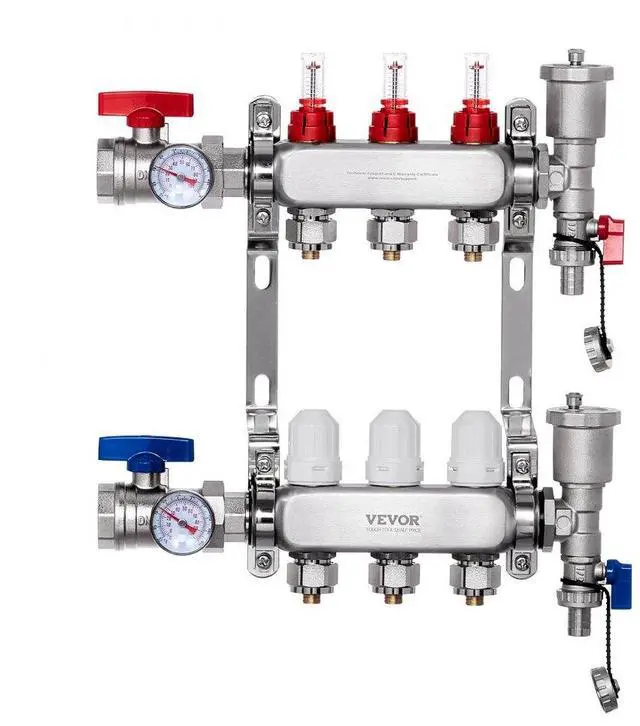 VEVOR 3-Branch Radiant Heat Manifold 1/2" PEX Tubing Floor Heating Manifold Set