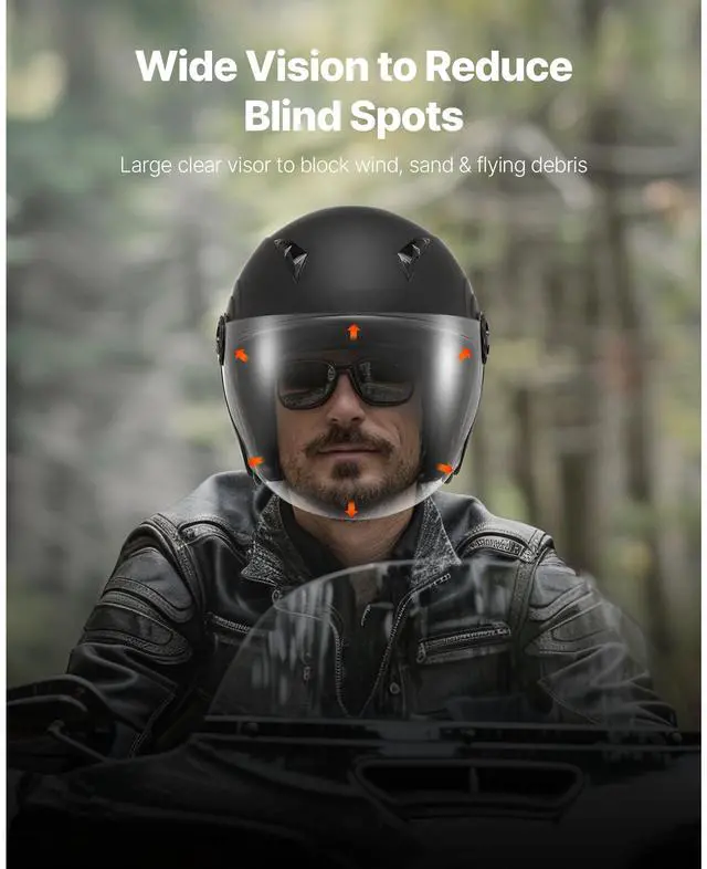 VEVOR 3/4-Face Motorcycle Helmet Motocross Helmet with Bluetooth Slot
