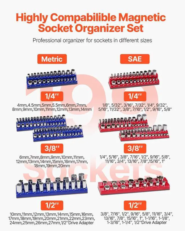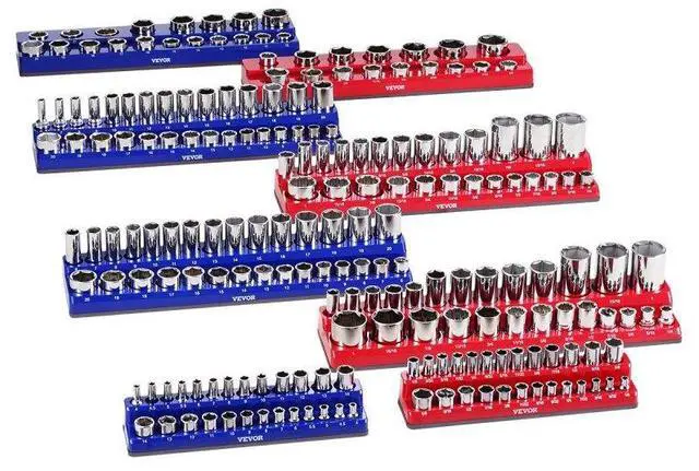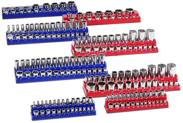 Magnetic Socket Organizer Set 8PCS Socket Trays Blue & Red for Metric SAE
