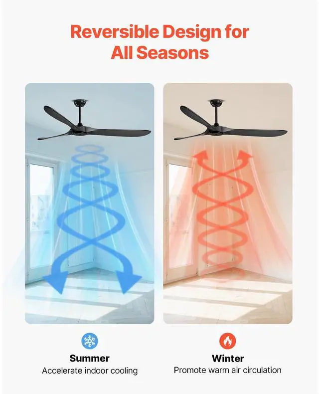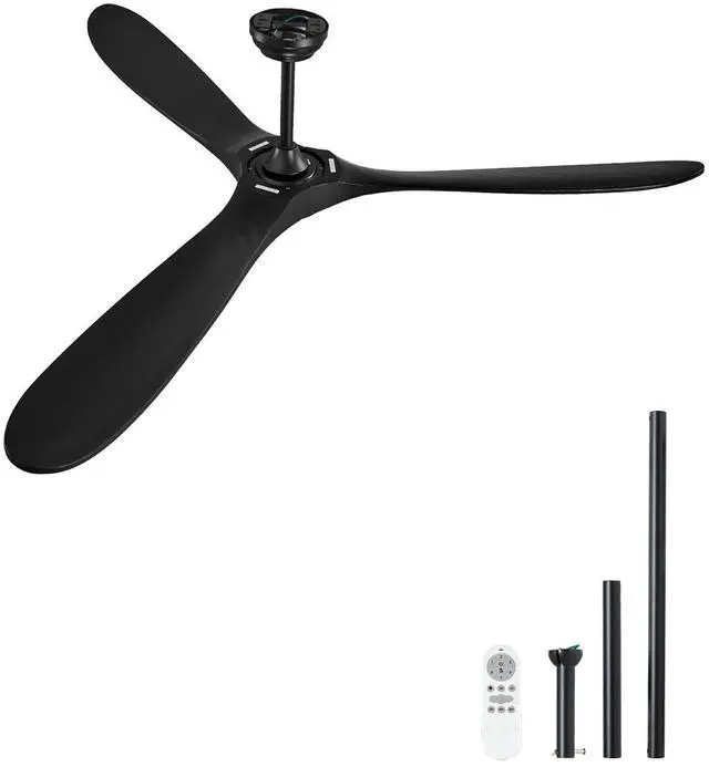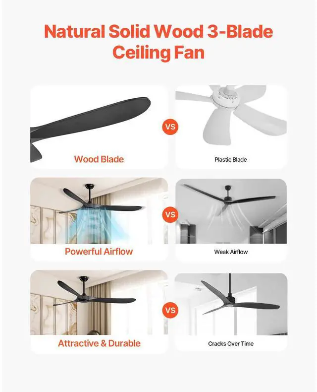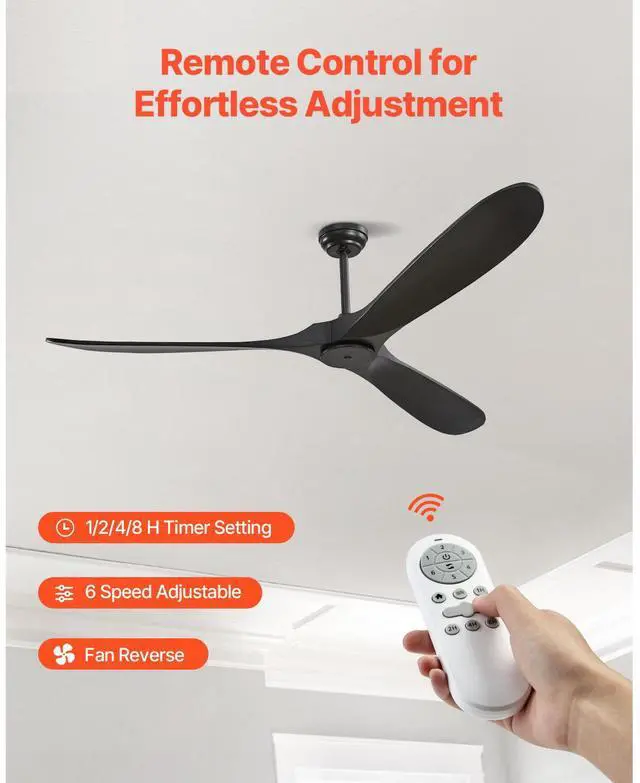 VEVOR 72 Inch Ceiling Fan without Light, 6-Speed Remote Control, 3-Wood-Blade, Reversible DC Motor, Modern Low Profile Flush Mount Exterior Fan for Bedroom, Living Room, Patio, Indoor/Outdoor, Black
