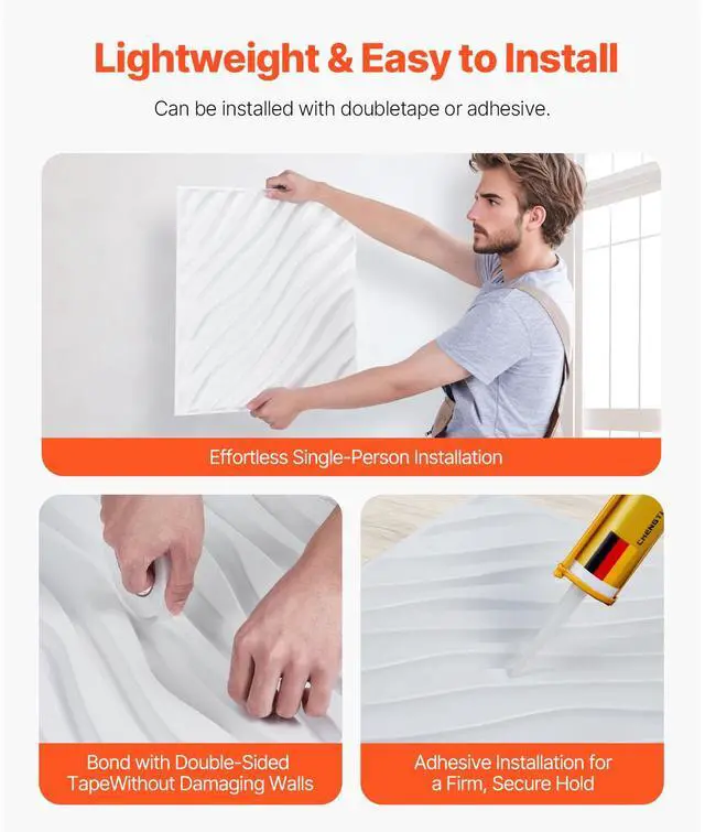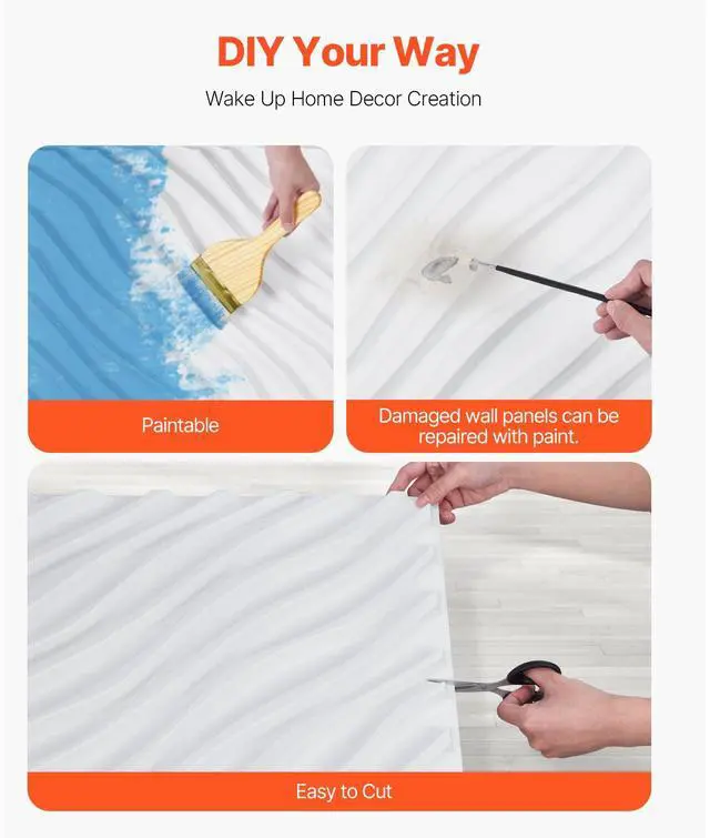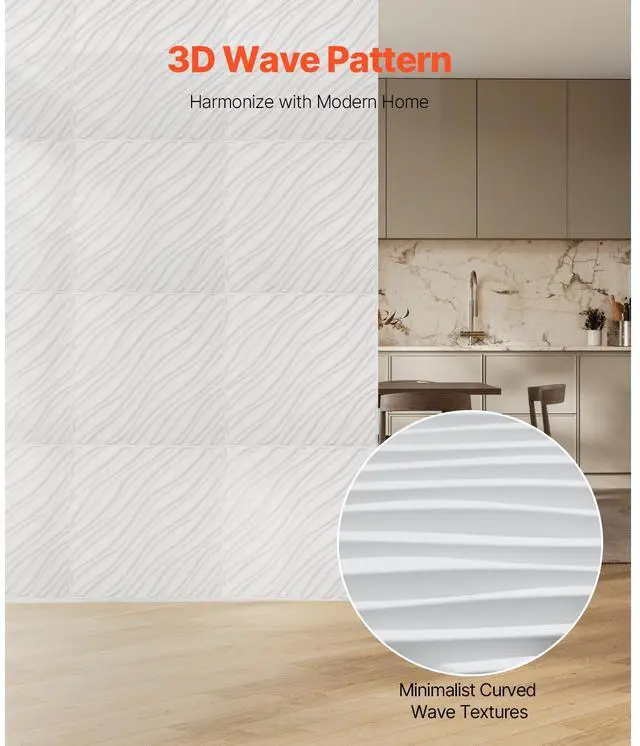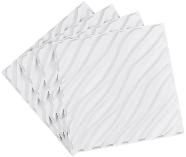 3D Wall Panels 12-Pack 19.7 x 19.7 inch PVC 32 Sq.Ft Coverage Wave Matte White