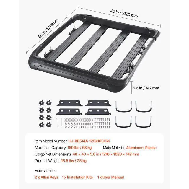 Item Model Number: HJ-RB514A-120X100CM,Product Weight: 16.5 lbs / 7.5 kg,Max Load Capacity: 150 lbs / 68 kg,Product Dimensions: 48 x 40 x 5.6 in / 1216 x 1020 x 142 mm,Main Material: Aluminum, Plastic