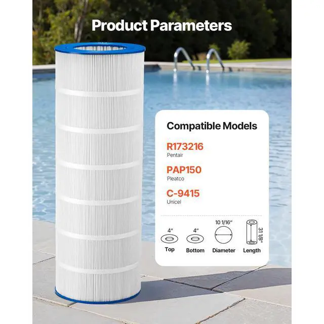 Hot Tub Pool Filter Cartridge 150 sqft Compatible Pentair R173216 Pleatco PAP150