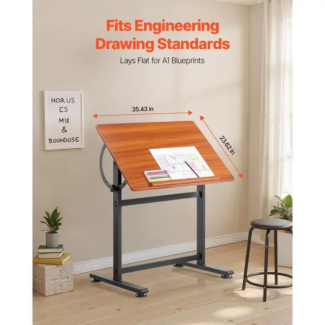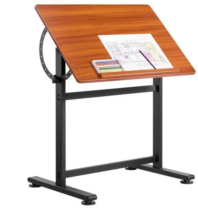 Drafting Table Adjustable 0°90° Tilt Wooden Drawing Desk with H-Frame