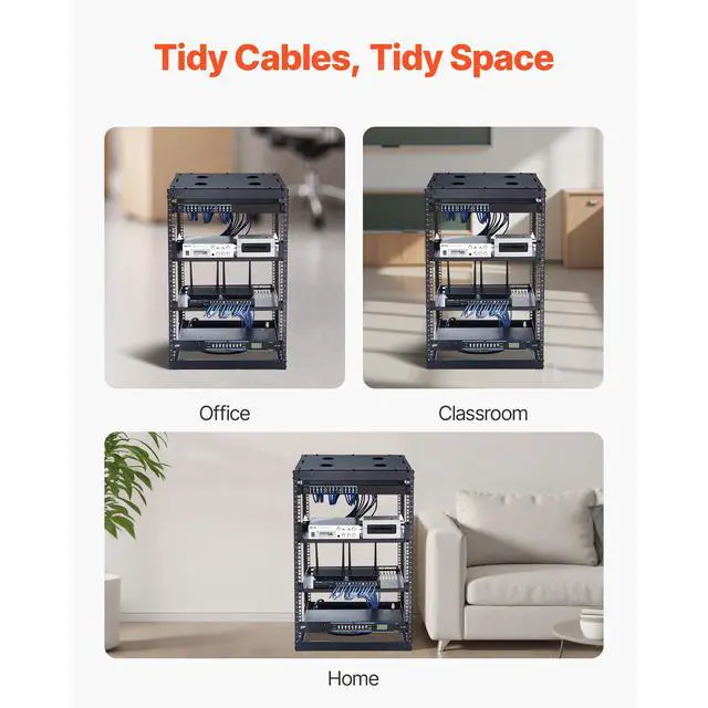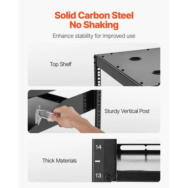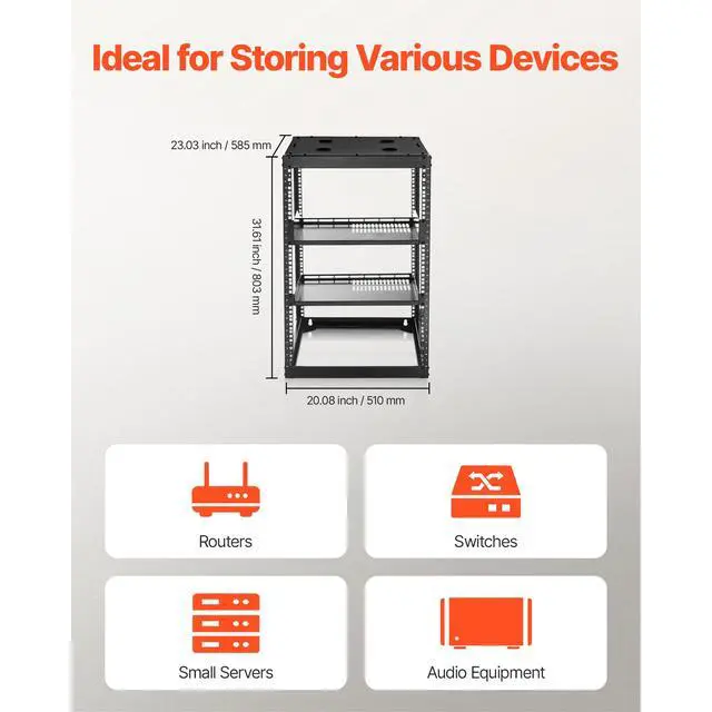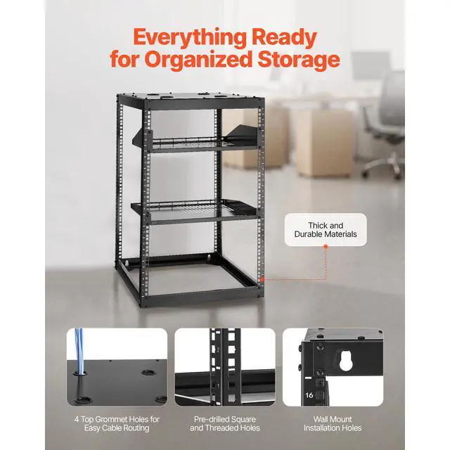 VEVOR 16U Open Frame Network Rack Wall Mounted Server Rack 4 Post with Shelves