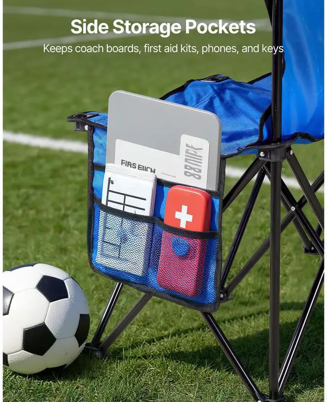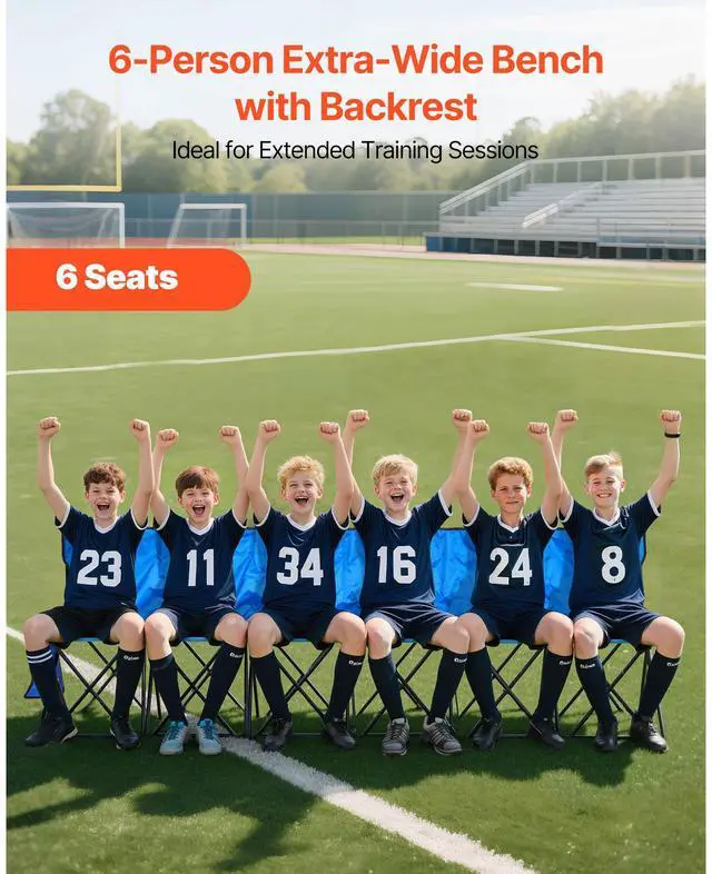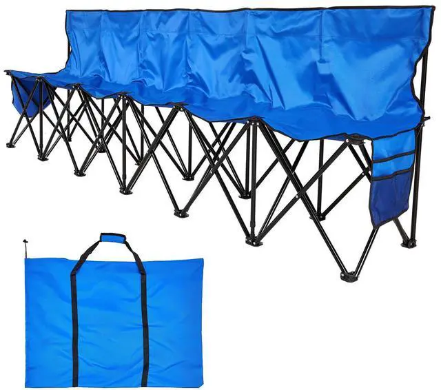 VEVOR Folding Chair Sport 6 Seat Sideline Team Bench with Sidebag Carry Bag Blue