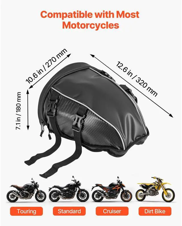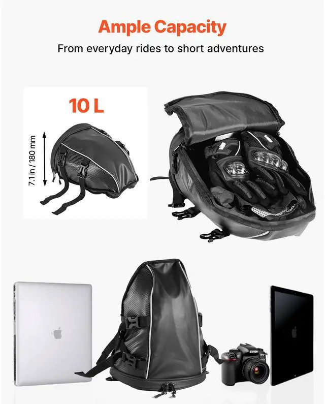 VEVOR Motorcycle Tail Bag Motorbike Rear Seat Bag Luggage Storage Backpack 10 L
