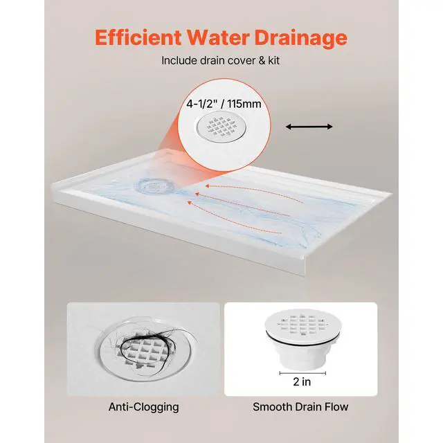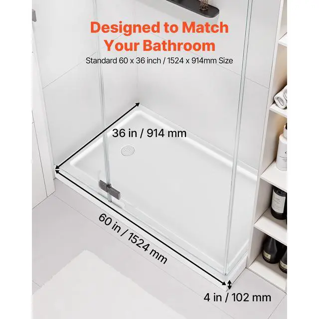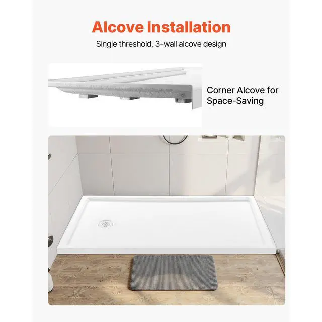 VEVOR Shower Pan 60 L x 36 W Single Threshold Shower Base Left Drain