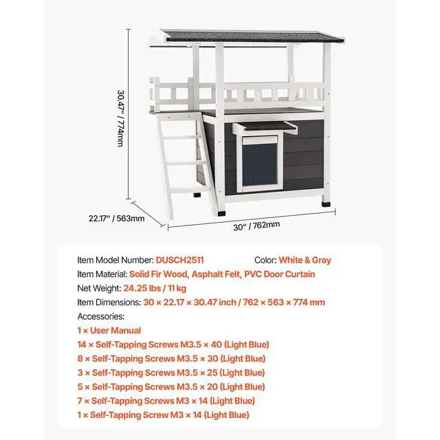 Item Material: Solid Fir Wood, Asphalt Felt, PVC Door Curtain,Color: White & Gray,Item Model Number: DUSCH2511,Item Dimensions: 30 × 22.17 × 30.47 inch / 762 × 563 × 774 mm,Net Weight: 24.25 lbs / 11 kg