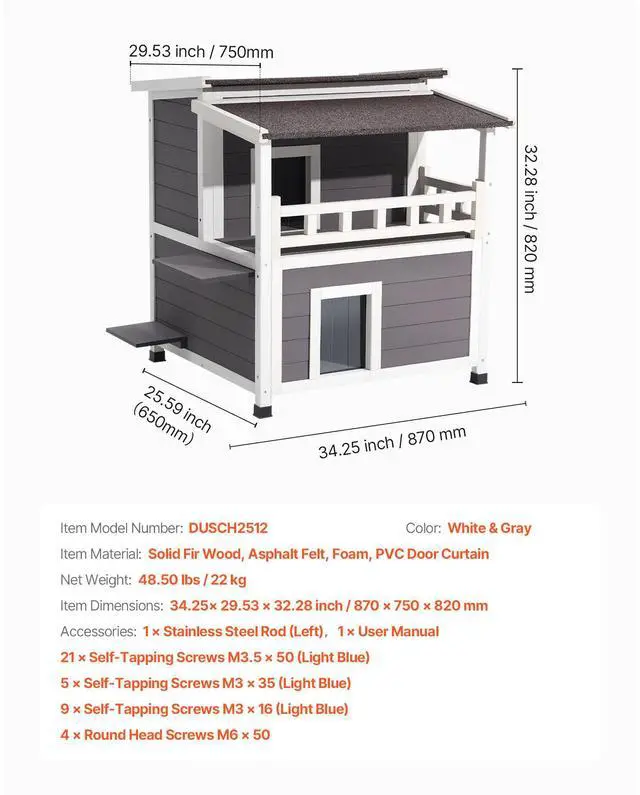 Item Material: Solid Fir Wood, Asphalt Felt, Foam, PVC Door Curtain,Color: White & Gray,Item Model Number: DUSCH2512,Item Dimensions: 33.07 × 29.53 × 32.28 inch / 840 × 750 × 820 mm,Net Weight: 48.50 lbs / 22 kg