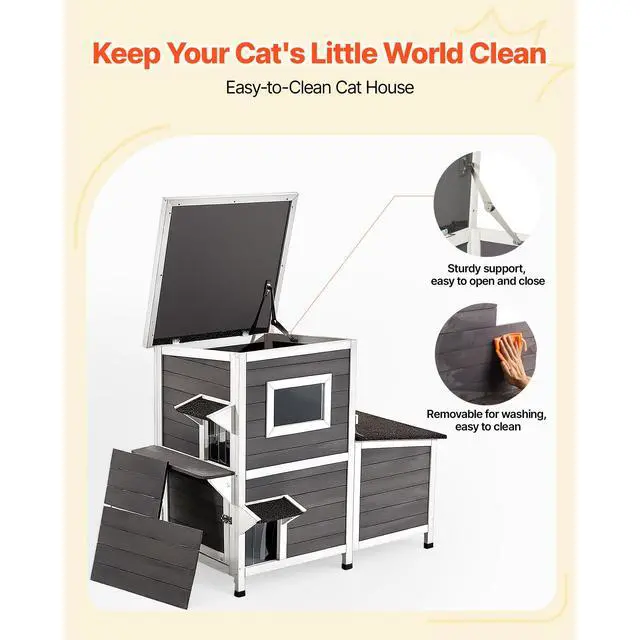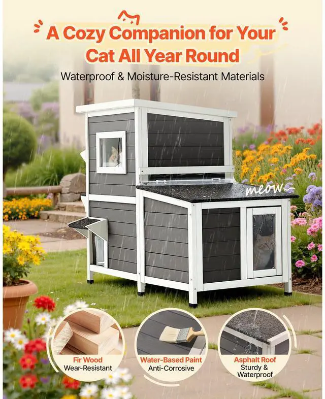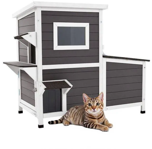 VEVOR Outdoor Cat House 2-Story Wooden Cat Shelter for 3 Outside Cats in Winter