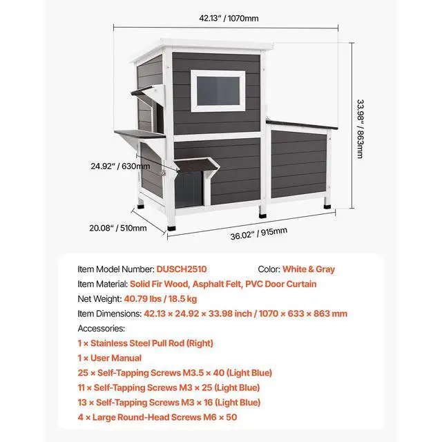 Item Material: Solid Fir Wood, Asphalt Felt, PVC Door Curtain,Color: White & Gray,Item Model Number: DUSCH2510,Item Dimensions: 42.13 × 24.92 × 33.98 inch / 1070 × 633 × 863 mm,Net Weight: 40.79 lbs / 18.5 kg