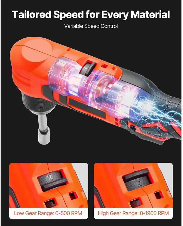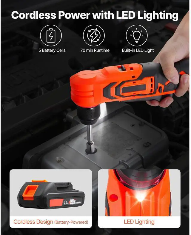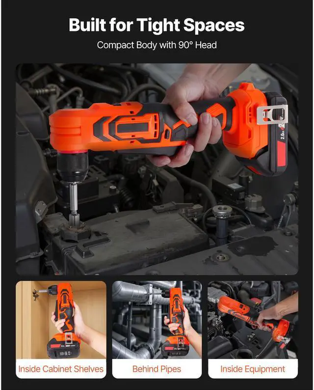 VEVOR Right Angle Drill 3/8 Inch Chuck 90 Degree Cordless Right Angle Drill