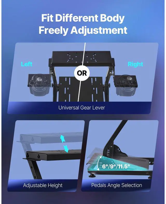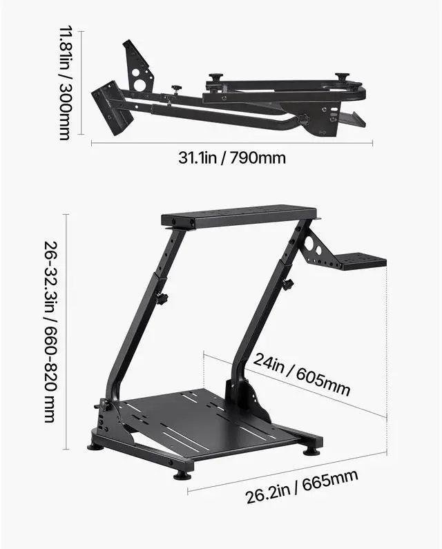 Shifter Left/Right Switching Function: Yes,Pedal Angle Adjustment Range: 6°, 9°, 11.5°,Steering Wheel Stand Height Adjustment Range: 2632 in / 660820 mm,Item Model Number: QY-GL08,Expanded Dimensions: 24 x 26.2 x 26 in / 605 x 665 x 660 mm,Folding Function: Yes,Compatibility: Thrustmaster T300RS,T300GT,T248, TS-PC,TSXW, T500RS,TGT,TGT2,Net Weight: 19 lbs / 8.65 kg