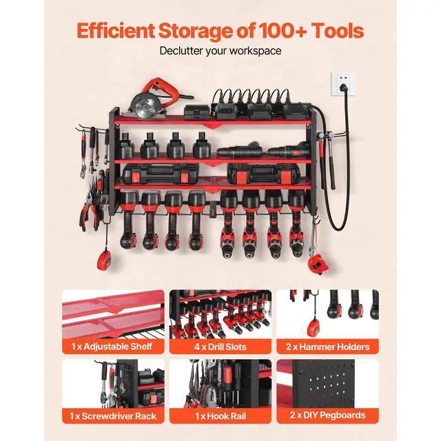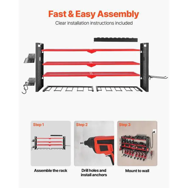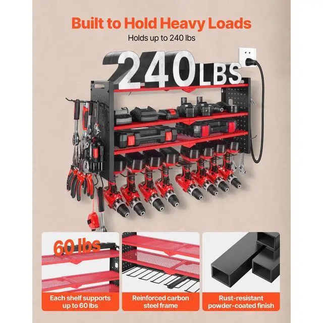 VEVOR Power Tool Organizer with Charging Station 3-Layer Drill Storage Rack