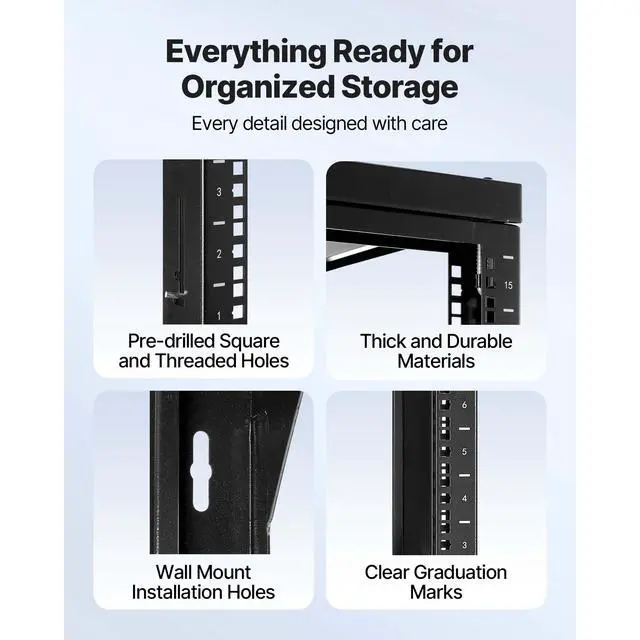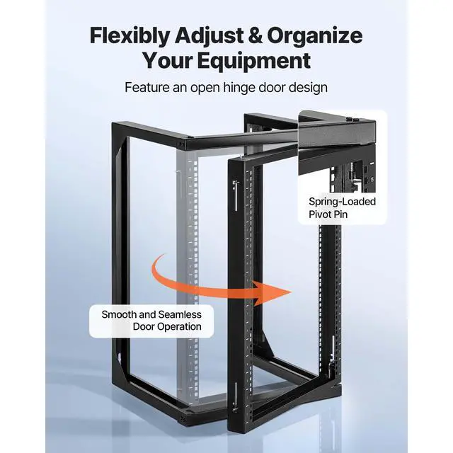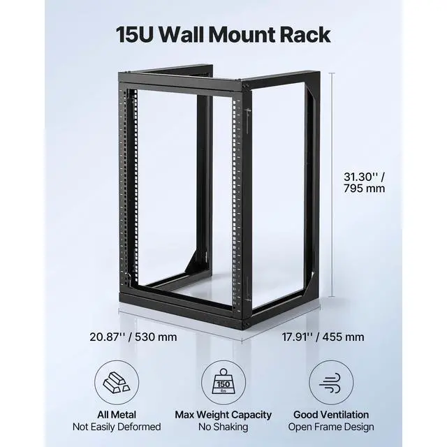 VEVOR 15U Wall Mount Server Rack Open Frame Network Rack 150 lbs 180 Degrees