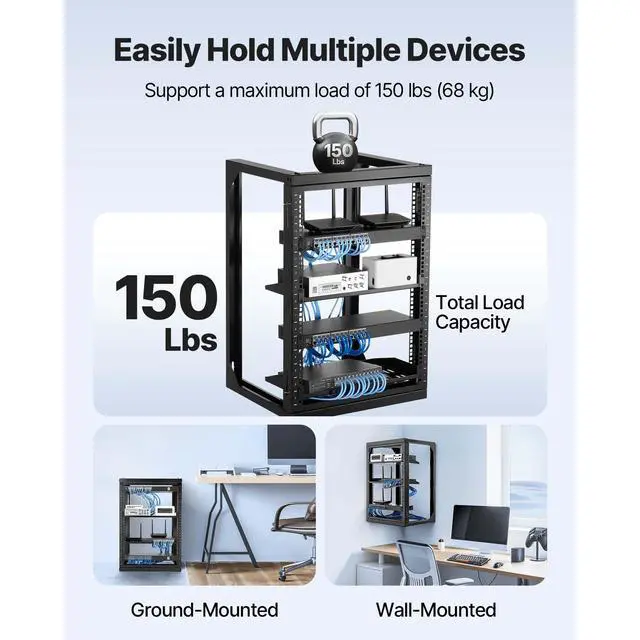 Max Weight Capacity: 150 lbs/68.04 kg,Item Model Number: SPT-505-15,Standard Mounting Width: 20.5 in/520 mm,Height: 15U,Material: Q235,Depth: 18 in/455 mm