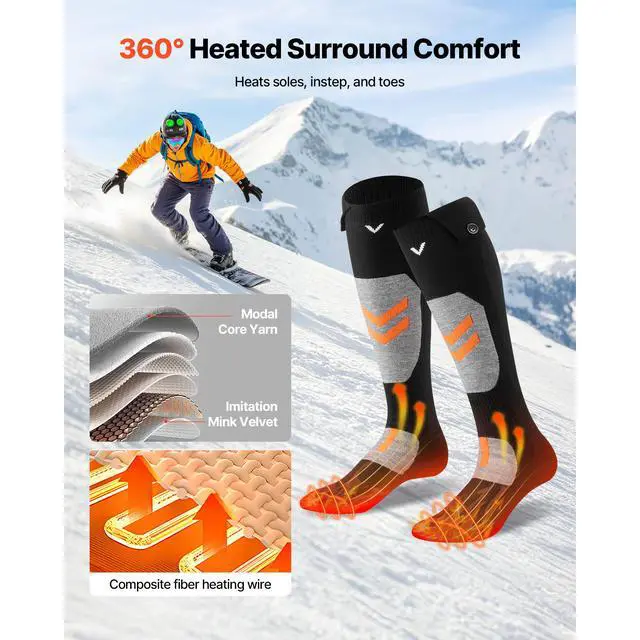 VEVOR Electric Heated Socks 5000mAh XL Size Rechargeable Heated Socks for Hiking