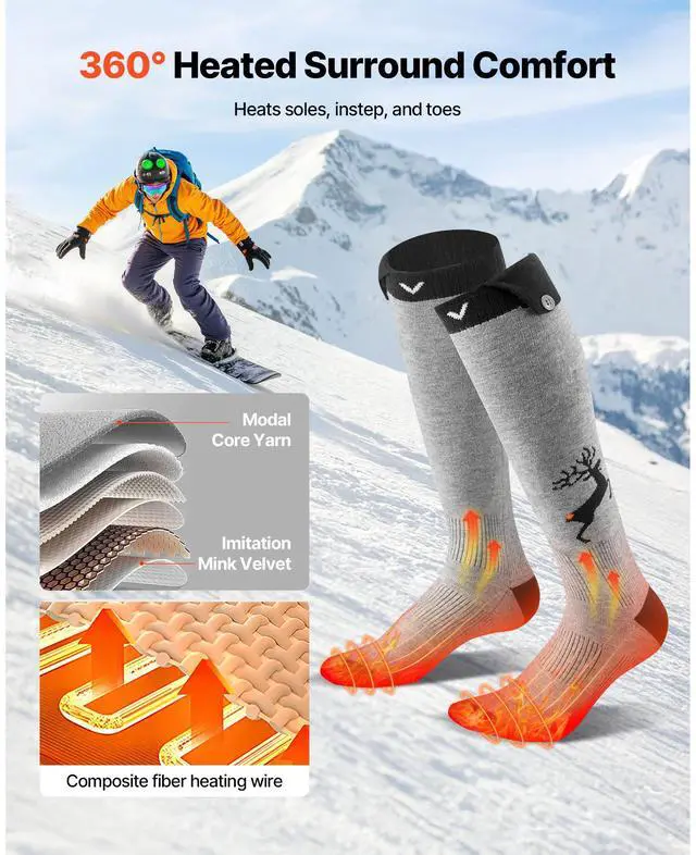VEVOR Electric Heated Socks 6000mAh Battery Powered Heated Socks for Hunting