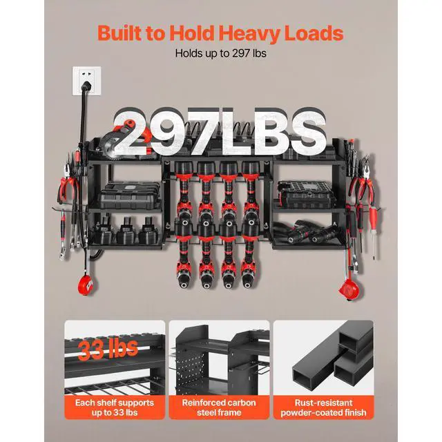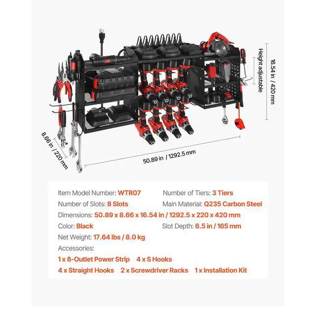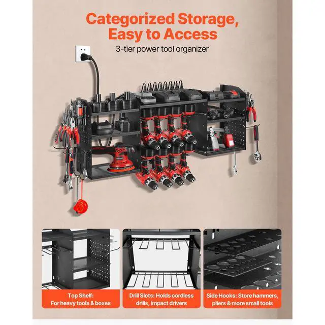 VEVOR Power Tool Organizer with Charging Station 8 Outlets Drill Storage Rack