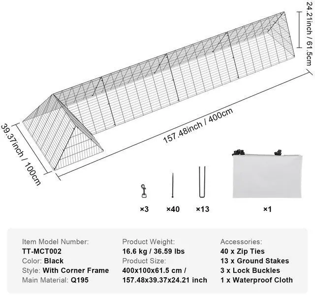 Color: Black,Item Model Number: TT-MCT002,Product Weight: 16.6 kg/36.59 lbs,Style: With Corner Frame,Main Material: Q195,Product Size: 400x100x61.5 cm/13.12x3.28x2.01 FT