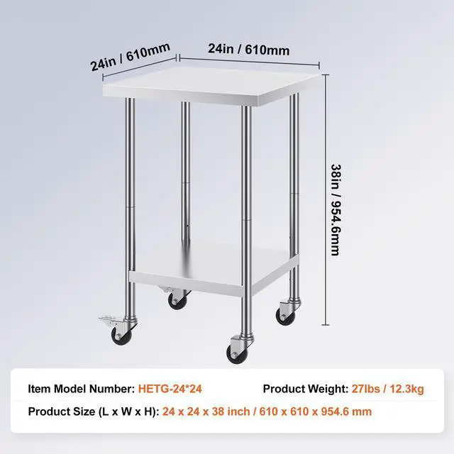 Height Adjustment: 3 Levels,Product Size (L x W x H): 24 x 24 x 38 inch / 610 x 610 x 954.6 mm,Item Model Number: HETG-24*24,Product Weight: 27 lbs / 12.3 kg,Material: Stainless Steel