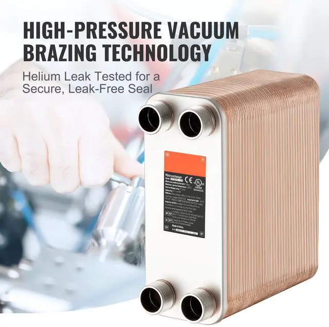 VEVOR 100 Plate Heat Exchanger 4*1-1/4" MNPT Ports 5"x 12" Brazed 316L St. Steel