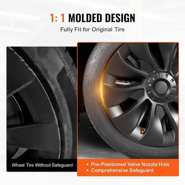 VEVOR Wheel Rim Cover Hubcaps, 18 in, 2017-2023 Model 3 Fully Fit Hubcap with Snap, Guard Tape & Valve Nozzle Hole, ABS & PC Hubcap with High Rigidity & Less Wind Drag, Fits for All Weather Use