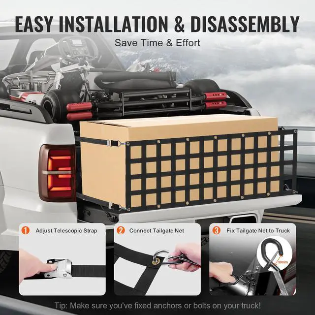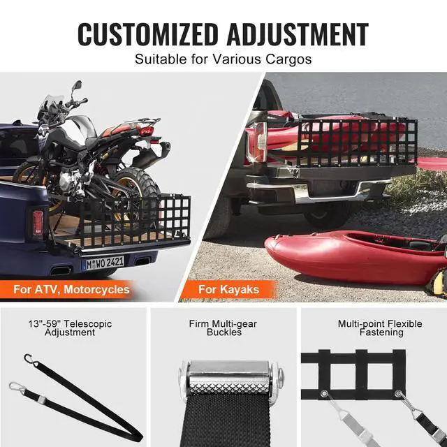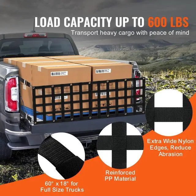 VEVOR Tailgate Net, 60 in x 18 in, Heavy Duty Cargo Net for Truck Bed with 4 Adjustable Telescopic Straps, Extendable & Durable, Flexible Adjustment, Suitable for Pickup, Trailer, Truck, Jeep, SUV