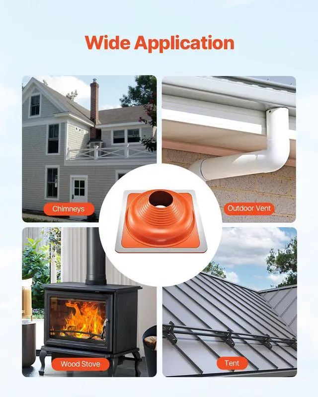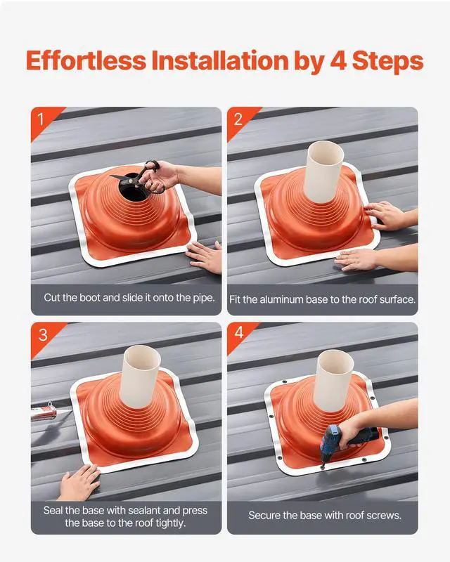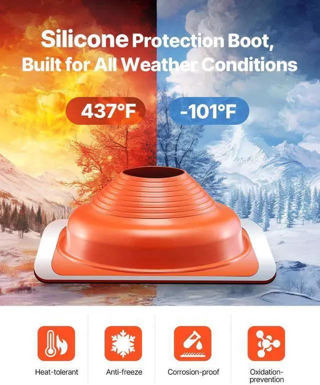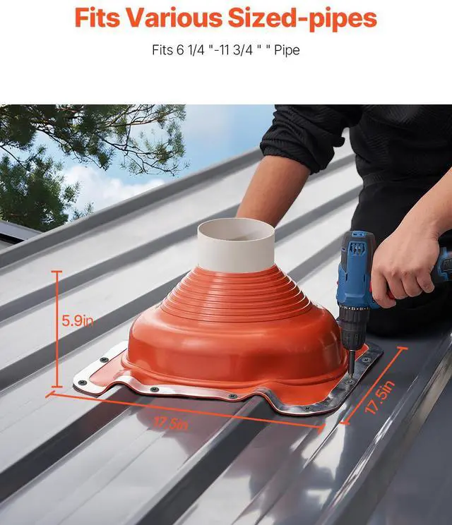 VEVOR 2 PCs Roof Pipe Flashing Boots, Fit Pipe OD 6-1/4" - 11-3/4", Flexible Silicone Roofing Jack Pipe Flashing, High Temp -101 - 437, Square Metal Base, for Chimney, Wood Stove & Outdoor Vent Pipe