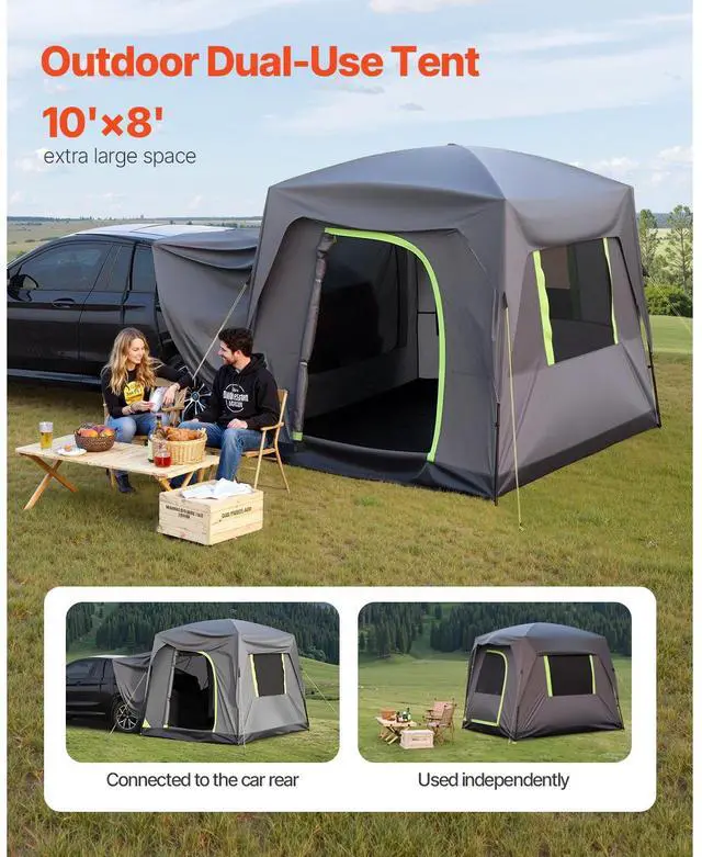 VEVOR SUV Tent for Camping, 10FT L x 8FT W, Waterproof PU2000mm Spacious Double Layer Design for 5-8 Person, SUV Camping Tent with Mesh Windows, Includes Rainfly & Storage Bag, for Outdoor Activities
